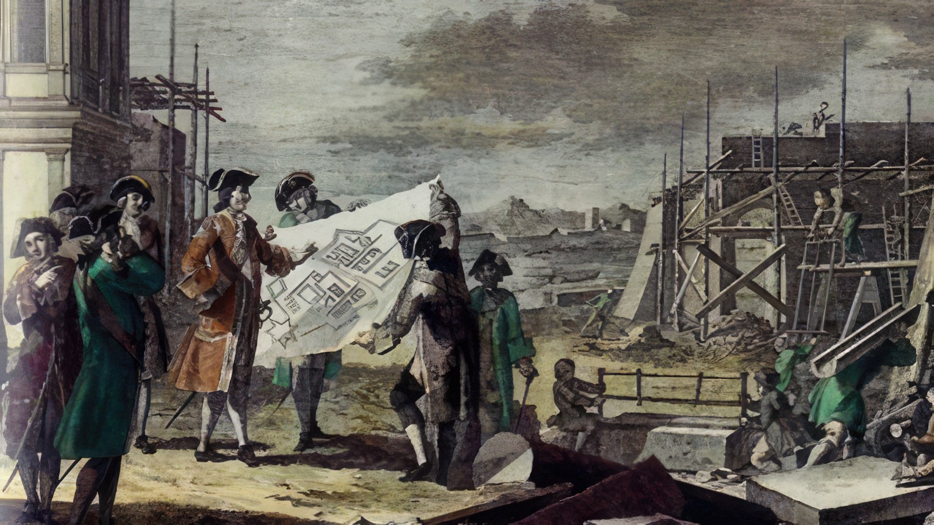 Впервые в России город строили не стихийно, а в регулярной планировке: прямые улицы составляли геометрически выверенные кварталы, а в них возводили дома по образцу. Царь изучал европейские журналы, теоретические трактаты архитекторов Витрувия и Андреа Палладио, а его идеи воплощали придворные зодчие-иностранцы - Жан-Батист Леблон и Доменико Трезини.